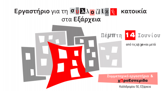 Ολοκληρώνουμε τον κύκλο συναντήσεων που ξεκινήσαμε πέρυσι τον Νοέμβρη και βρισκόμαστε μαζί αυτή την Πέμπτη για να επεξεργαστούμε ένα συγκεκριμένο σενάριο συλλογικής κατοικίας για την Αθήνα. Μετά από ένα κύκλο 4 θεματικών συζητήσεων και μέσα από μια ανοιχτή συμμετοχική διαδικασία συνδιαμόρφωσης του προγράμματος και των θεματικών, στόχος της τελευταίας μας συνάντησης είναι η σύνθεση ενός ολοκληρωμένου, εφαρμόσιμου μοντέλου συλλογικής κατοικίας για κτήρια της Αθήνας.