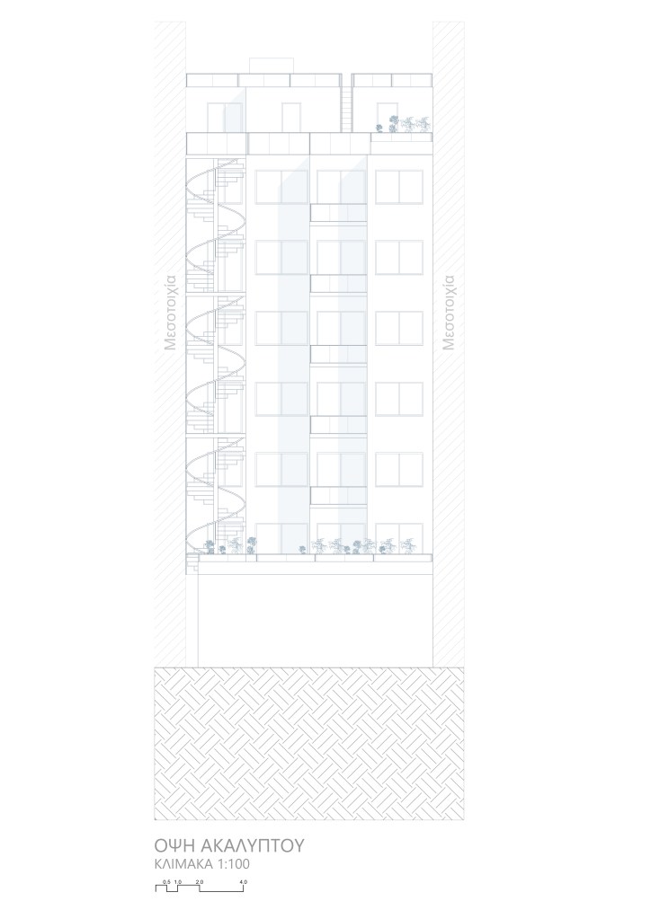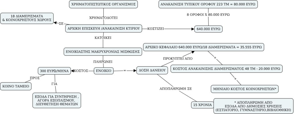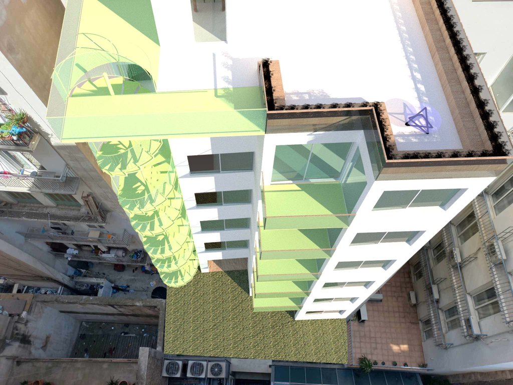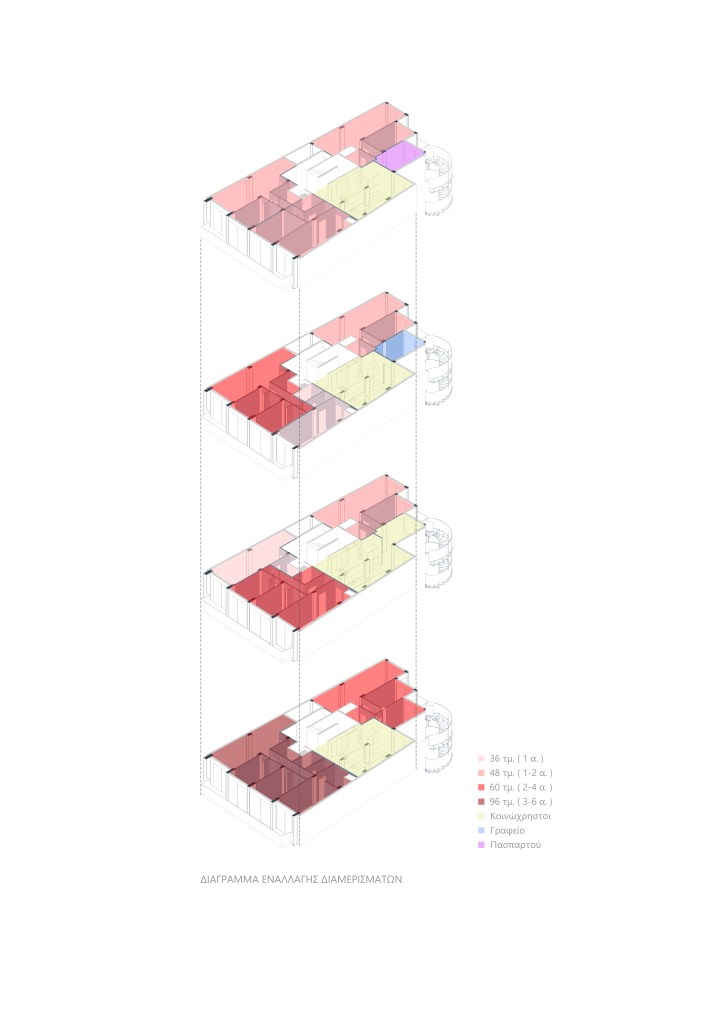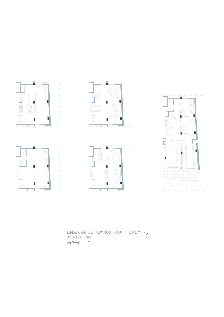 Το κτίριο στην οδό Μενάνδρου στην Ομόνοια είναι πρώην κτίριο του ΕΦΚΑ κατασκευασμένο το 1950. Πρόκειται για επταώροφο κτίριο το οποίο με την εφαρμογή της πρότασης θα μπορεί να στεγάσει 36 άτομα σε 18 διαμερίσματα με εμβαδόν από 36 έως 90 τμ. Η πρόταση απαντά στο πρόβλημα των υψηλών ενοικίων στην Αθήνα, προωθώντας ταυτόχρονα την κοινωνική αλληλεπίδραση και την κοινή διαβίωση.