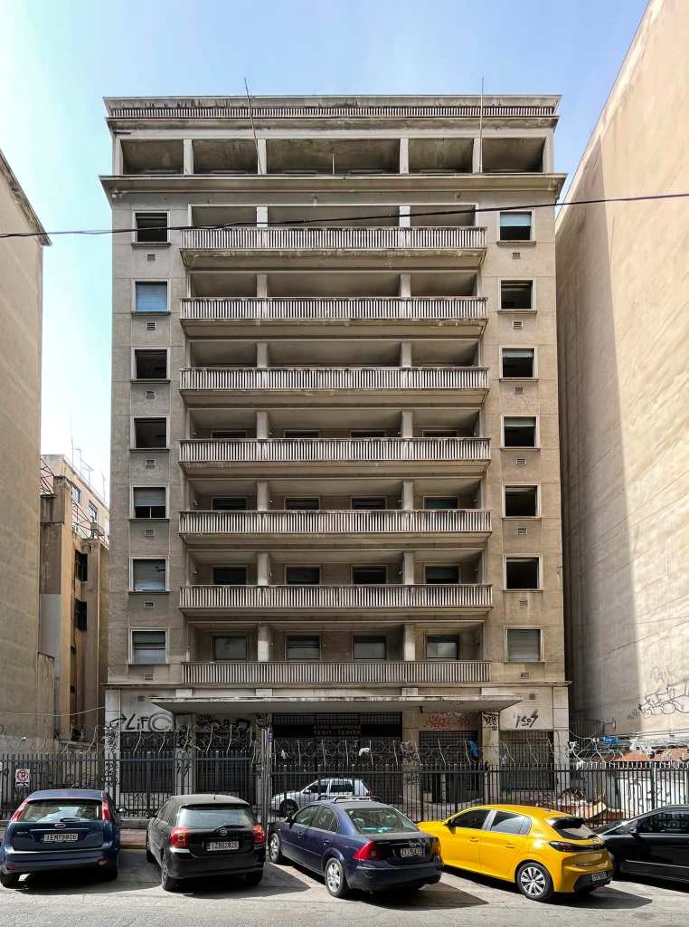 Ιστορικό: 7όροφο κτίριο ιδιοκτησίας ΕΦΚΑ (πρώην ΕΤΕΑΕΠ) με εμβληματικό χαρακτήρα κατασκευασμένο το 1958 σε σχέδια του αρχιτέκτονα Σπύρου Στάικου. Λειτούργησε το 1961 – 1980 ως ξενοδοχείο «Ambassadeur» και στη συνέχεια , από το έτος 1981 έως το 2000, ως το Εφετείο Αθηνών. Για ένα διάστημα λειτουργούσε ως άτυπη στέγη μεταναστών. Παραμένει αναξιοποίητο επί 20ετία.