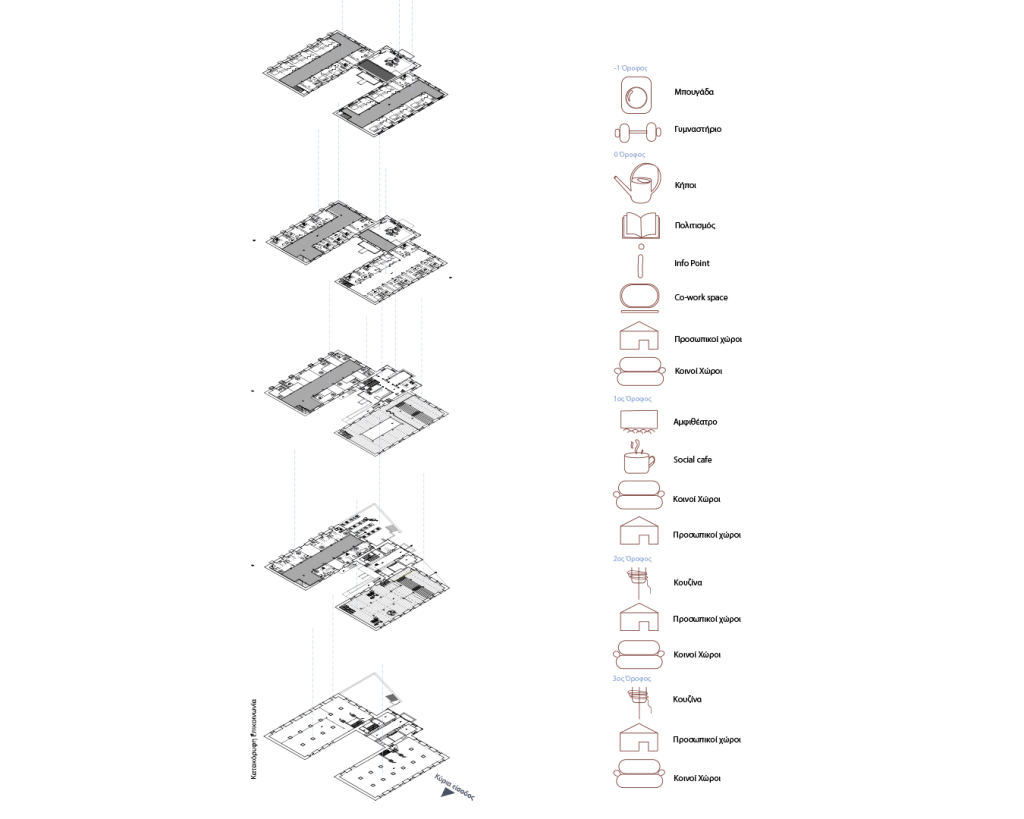 Ο χώρος έχει σχεδιαστεί ώστε να φιλοξενεί διαφορετικές ηλικιακές ομάδες, είτε αυτοεξυπηρετούμενες είτε μερικώς αυτοεξυπηρετούμενες, προάγοντας τη συλλογική διαβίωση και τη διαγενεακή αλληλεπίδραση. Το συγκρότημα περιλαμβάνει διάφορους τύπους διαμερισμάτων, κοινόχρηστους χώρους, βιβλιοθήκη, γυμναστήριο και εργαστήρια τέχνης.