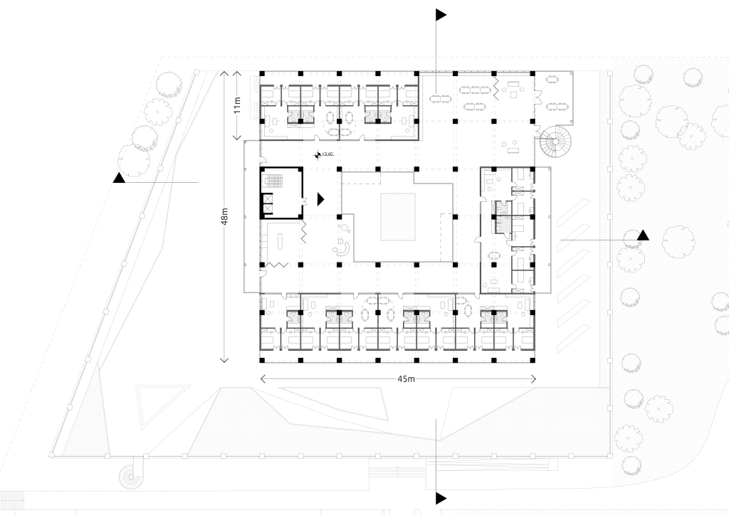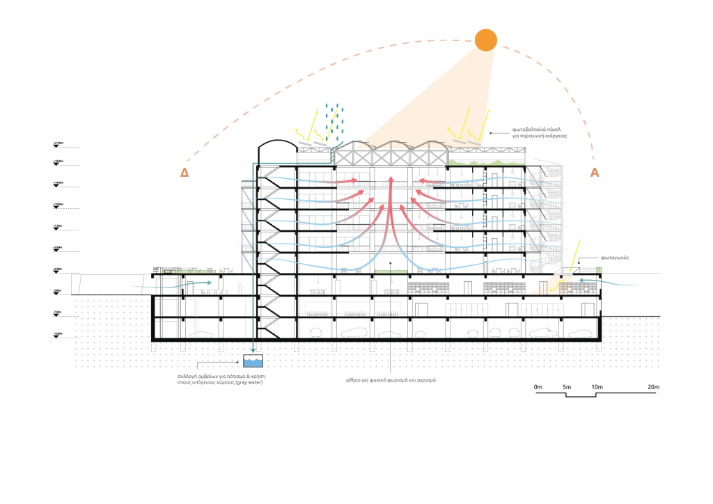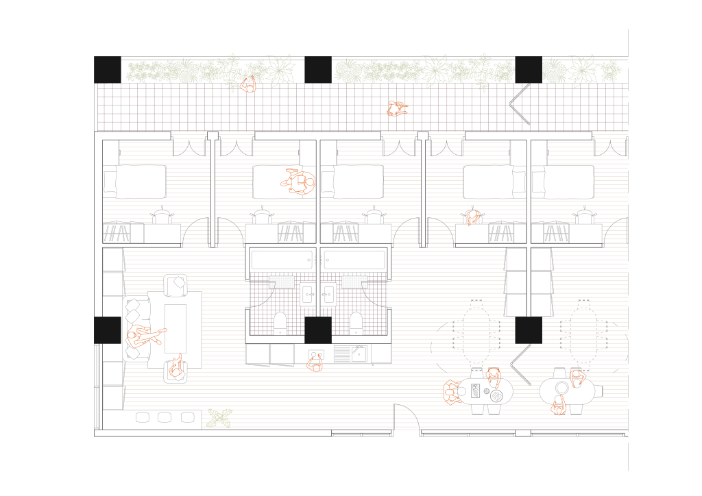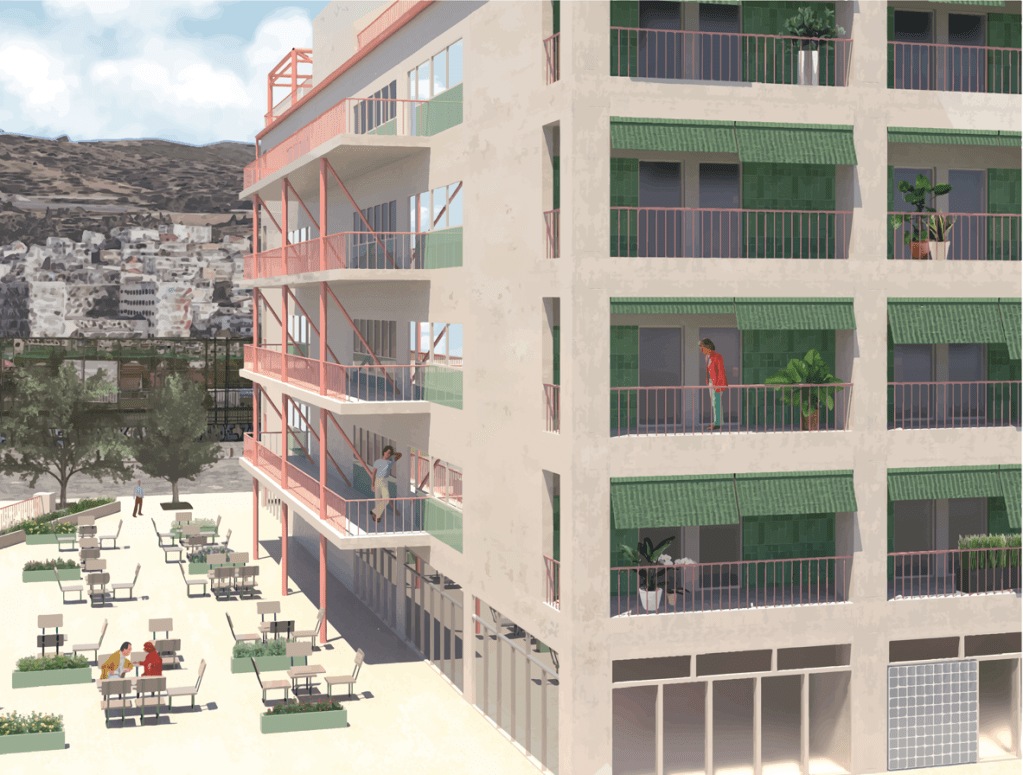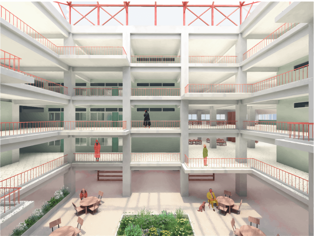 Το έργο συνεταιριστικής κατοίκησης “Living Debris” με την ανακατασκευή του Κτιρίου Παραπληγικών στοχεύει στην στέγαση 108 φοιτητών του ΑΠΘ και έχει έκταση 20.260 τ.μ. Βασίζεται στην αλληλεγγύη και την συμπερίληψη των φοιτητών-ενοίκων κοινωνικά και οικονομικά. Στο προτεινόμενο μοντέλο κατοίκησης τα μέλη-κάτοικοι ανά όροφο (“γείτονες”) μοιράζονται κοινόχρηστους χώρους διημέρευσης, προετοιμασίας φαγητού και πλυσταριού, ενώ ανά διαμέρισμα (“συγκάτοικοι”) δύο χώρους λουτρού, έναν χώρο διημέρευσης και kitchenette. Στο δώμα τοποθετείται κοινόχρηστος λαχανόκηπος με θερμοκήπιο και χώρος για άπλωμα των ρούχων. Το ισόγειο, τα επίπεδα -1 και -2 απευθύνονται σε όλο το πανεπιστήμιο. Η κεντρική είσοδος βρίσκεται στο ισόγειο, επί της οδού Αγίου Δημητρίου, με χώρους διοίκησης, ένα παντοπωλείο, καφέ και φυτεύσεις. Στο επίπεδο -1 συναντά κανείς αναγνωστήρια εργαστήρια, στο -2 χώρους εκθέσεων και αμφιθέατρα. Το -3 παραμένει parking. Το κτίριο ανακατασκευάζεται σύμφωνα με αρχές βιοκλιματικού σχεδιασμού, με ορθή τοποθέτηση χρήσεων, προσανατολισμό, επιλογή υλικών και συστημάτων, μειώνοντας το περιβαλλοντικό αποτύπωμα.